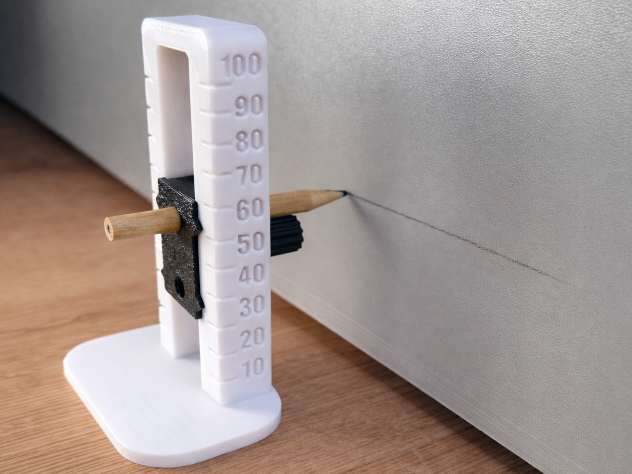 Uma ferramenta prática impressa em 3D para marcação precisa de altura em tábuas, paredes e outras superfícies planas.