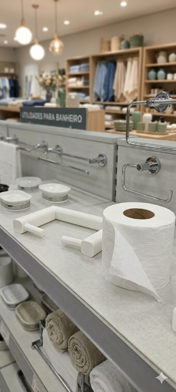 Diga adeus aos suportes convencionais com molas complicadas. O Suporte Easy-Change une a estética contemporânea com um sistema de troca rápida, ideal para quem busca praticidade sem abrir mão do estilo. Com seu formato geométrico e acabamento premium, ele se adapta perfeitamente a banheiros modernos, lavabos e suítes.